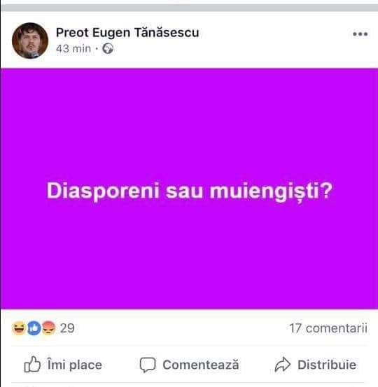 Într-o altă postare, Eugen Tănăsescu scrie: „Am crezut că-i glumă dar nebunia e în creştere. Ura tâmpeşte!”.