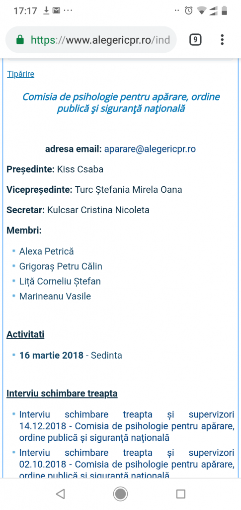 De fapt, „milițienii jmecheri” în mâinile cărora a încăput conducerea Colegiului Psihologilor din România își afișează public încălcările de la propria Lege căci „nimeni si nimic nu le poate face ceva”, ei fiind „Dumnezeii” Psihologiei romanesti: Kiss Csaba (pe care vi l-am prezentat în articolul nostru anterior https://www.incisivdeprahova.ro/2018/12/13/exclusivcaz-clasic-de-incalcare-legii-incompatibilitate-si-conflict-de-interese-dr-kiss-csaba-din-politia-capitalei/), Turc Ștefania Mirela Oana (sotia sefului Centrului de Psihologie al Ministerului Afacerilor Interne, Turc Darius. Aceasta profesează ca „psiholog-politist” în cadrul Inspectoratului General al Poliției de Frontieră Romane), Duvac Ion (fratele fostului director al Corpului de Control al Ministrului Afacerilor Interne, Duca Constantin, membru de vază în Asociația Criminalistilor din Romania, semianalfabet si slugarnic ori-de-cate-ori primea ordin „sa-l faca p’ala”), Iliescu Dragos (detinator de teste, vânzător de teste către centru psihologie, dragoste cu năbădăi), Grigoraș Petru Călin (fost comisar sef – psiholog in Inspectoratul General al Politiei Romane).