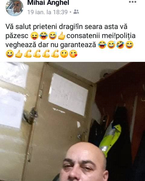 Continuam dezvaluirea despre domnul polițist ASP Anghel Mihai (finul edilului de la Branesti) care, după cum puteți observa face ce vrea în timpul programului de lucru. Cine poate sa-l tragă la răspundere? Nimeni, absolut nimeni…..căci este polițistul intangibil! După spusele domniei sale pe rețeaua publică de socializare Facebook „Poliția veghează dar nu garantează „, ne permitem să mai adăugăm ” dar, comentează „.