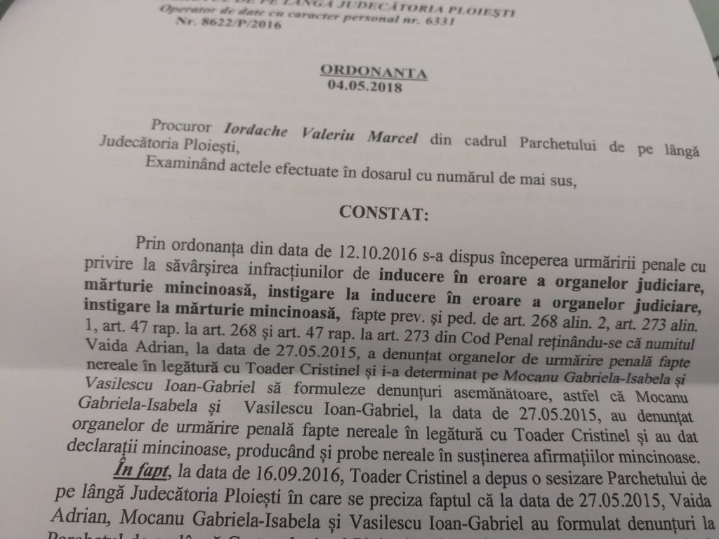 Va vom dezvalui adevaratul motiv pentru care GHEORGHE CARMEN DANIELA a fost protejata de procurorul „ZDREANTA” si, in continuare, de procurorul sef ONEA GABRIEL LUCIAN in cel putin trei dosare (cel disjuns din nr. 34/P/2016 al primarului Campinei, Horia Tiseanu, nr. 255/P/2015 si inca unul, al carui numar ne scapa pe moment, dar aproape ca nici nu mai are importanta. In fapt, este actualul dosar penal in care a fost audiata saptamana trecuta pentru utilizarea autoturismelor Politiei Locale Ploiesti in interes personal dar si pentru cursurile profesionale sus mentionate).