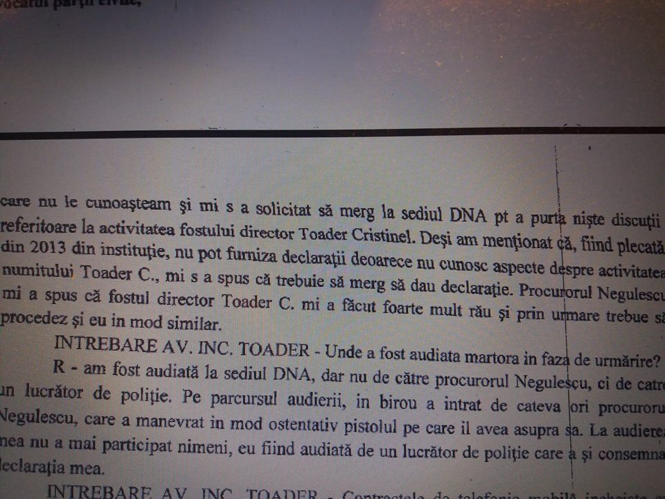 Astfel, procurorul Negulescu Mircea a folosit-o pe infractoarea Carmen Daniela Ggeorghe in schimbul protectiei cerectarii in dosarele sus mentionate la fabricarea de probe si inregistrarea ambentala ilegala a lui Cristinel Toader: