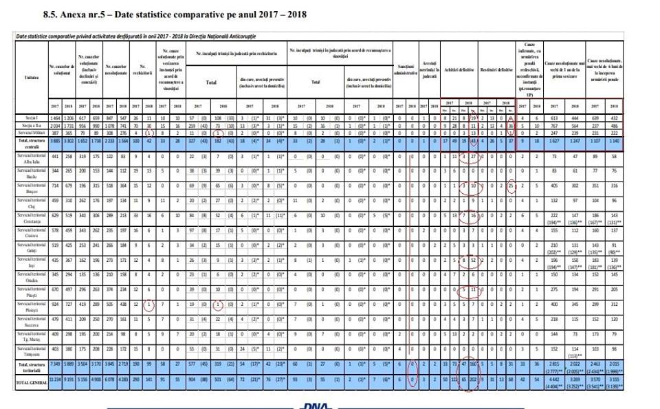 – structura centrală are 43 de oameni achitaţi definitiv în 2018
