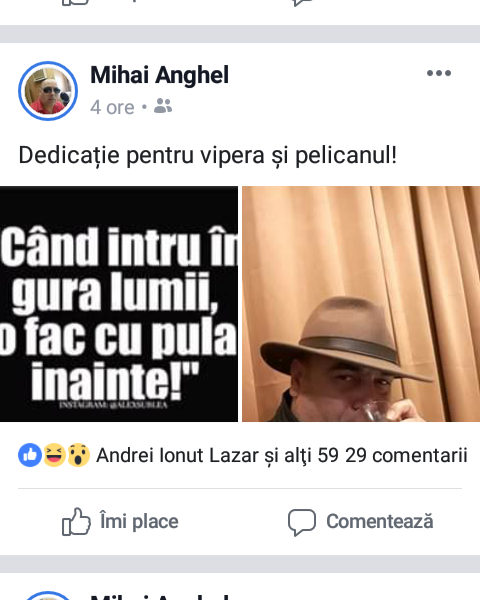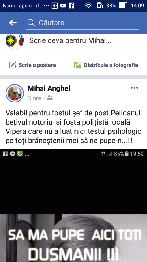 Mai mult, dupa aparitia dezvaluirilor din ziarul nostru, polițistul ASP Anghel Mihai din cadrul Postului de Poliție Branesti a inceput sa aiba un comportament deviant, de natura sexuala, in mod explicit pe pagina sa de socializare. (Alaturat va atasam pozele de pe pagina sa oficiala de Facebook).