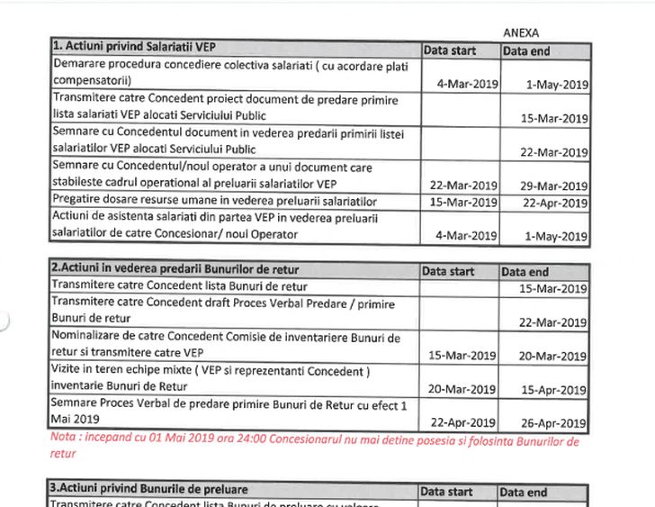 De asemenea, în document este propus şi un calendar de predare a intalaţiilor, iar Primăria ete somată să îşi exprime intenţiile cu privire la închirierea turbinei cu gaz (TAG).