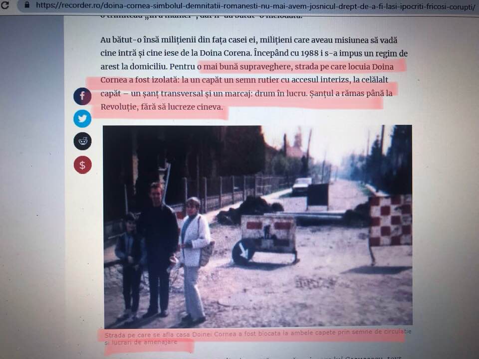 Azi, după 30 de ani, omul care i-a păzit casa, de la Trupele de Securitate, nepot de mega securist, Virgil Ardelean, fix pe această stradă blocată, Dacian Cioloş pe numele lui, are tupeul infinit sa spună ca nu știe de ce păzea casa Doinei Cornea, ca nu știa ca ea era acolo, se închipuie mare politician, nu reuseşte de 2 ani să găsească gradul de rudenie cu unchi’su de la Securitate și se visează presedinte al României, și șefa Radio Europa Liberă practic îl înjură pe băiatul Doinei Cornea că a spus niște adevăruri la Antena 3.