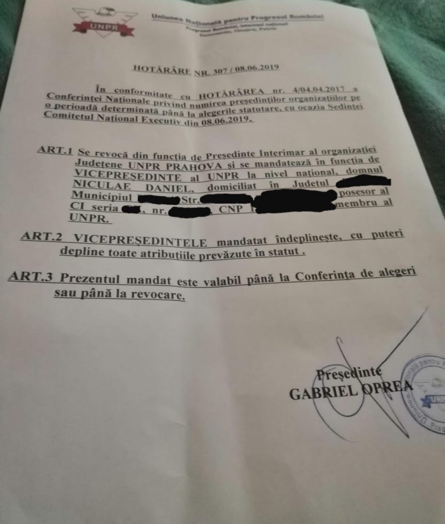 Tot cu aceasta ocazie, presedintele Niculae Daniel a fost numit vicepresedinte la nivel national iar ca Presedinte al Organizatiei Judetene UNPR Prahova a fost numit ec Adrian Radu.
