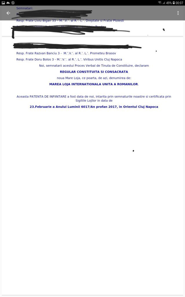 In acest sens, “venerabilul” care se prezinta ca G-ral SIE si/sau G-ral SRI, in functie de tepele pe care le aplica a constituit de cateva ori aceasta “Camera de Comert” fantoma introducand in statutul de infiintare pe rand, persoanele inselate.