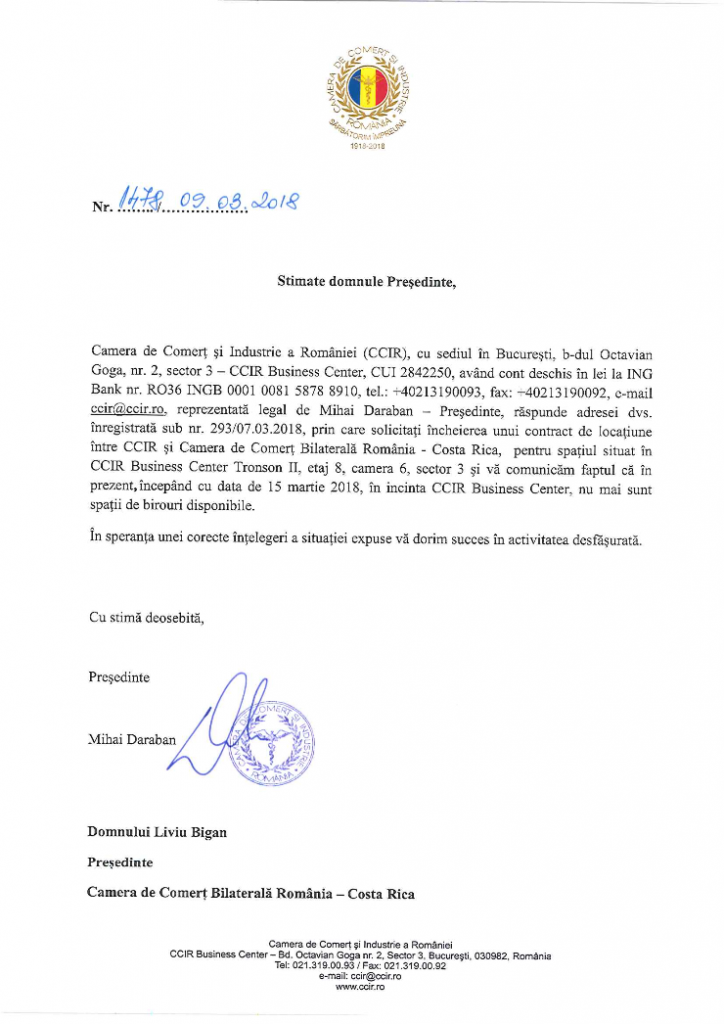 FANTOMATICA CAMERA DE COMERT BILATERALA COSTA RICA-ROMANIA