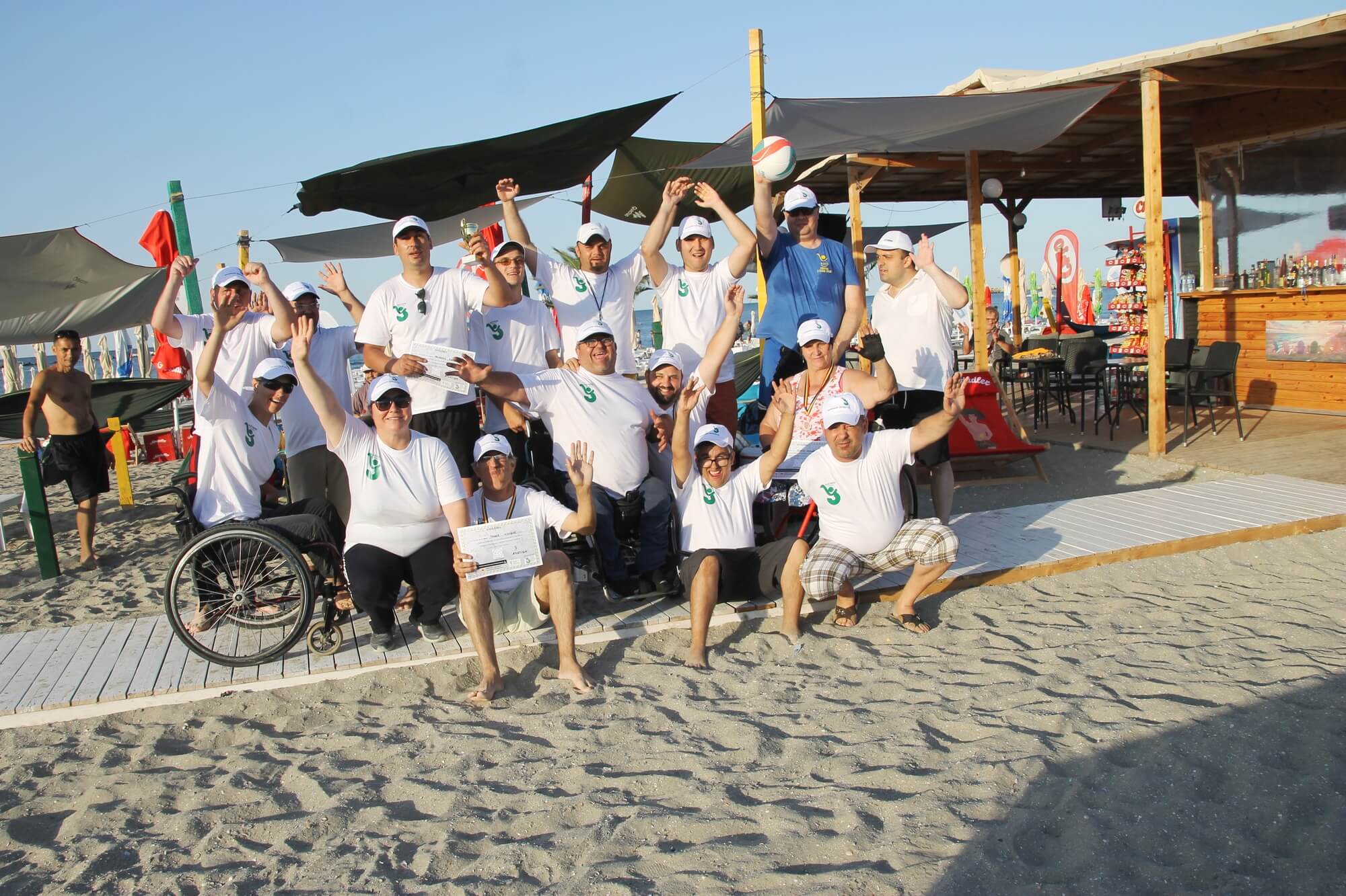 Pe plaja Blanco din Mamaia a avut loc duminica, 30 iunie prima editie a jocurilor sportive pe plaja adaptate pentru persoanele cu dizabilitati si utilizatori de fotoliu rulant „AJCSPH Summer Sports”. Peste 20 de sportivi paralimpici s-au intrecut la discipline sportive precum petanque, atletism (proba de aruncare a greutatii si de viteza), volei si tenis de plaja, intr-o atmosfera caracterizata de fair-play si buna dispozitie. Echipati cu tricouri si sepcute personalizate albe, care sa mai alunge razele soarelui ale caniculei care ne-a acaparat in ultima perioada, dupa aproape 5 ore de intreceri si meciuri spectaculoase, sportivii Asociatiei Judetene Constanta a Sportului pentru Persoane cu Handicap si-au desemnat castigatorii, astfel: