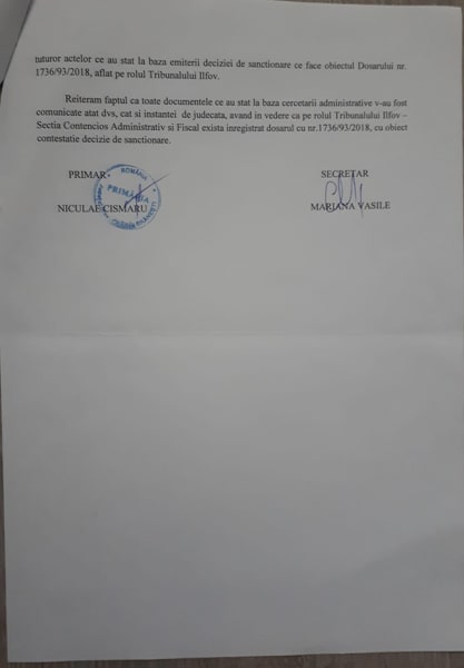 De asemenea ținem morțiș să reiteram faptul că, încălcarea legii din Comisia de Disciplină de la nivelul Primăriei Brănești sub directa coordonare a doamnei Secretar U.A.T, Vasile Mariana Liliana…..Presedintele Comisiei de Disciplina constituie obiectul unui dosar penal pentru săvârșirea infracțiunii de abuz în serviciu. Vom urmări cu atenție parcursul dosarului penal și vom prezenta toate informațiile de interes public.