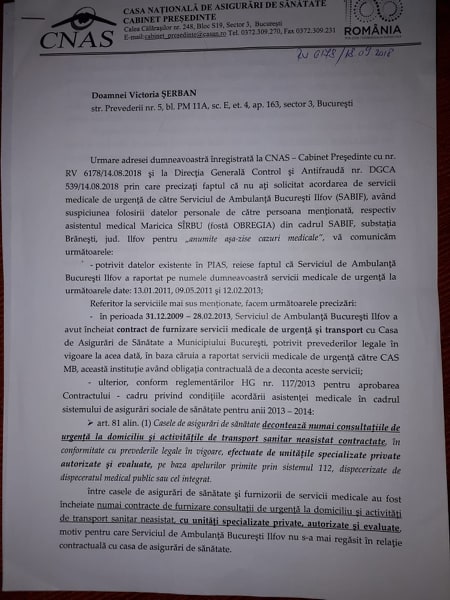 Deși, în mod normal ar trebui să avem respect față de aceste persoane care sunt în slujba acestui serviciu, munca lor fiind de-a dreptul nobilă, această asistentă ne-a atras atenția cu privire la „tupeul” grosolan de a inventa cazuri fictive înregistrate la această unitate și decontate de Casa Națională de Asigurări de Sănătate ( CNAS) profitând de anumite ocazii și împrejurări în care își alegea „așa-zise victime”….