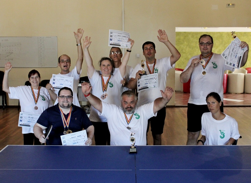 Luni, 12 august, chiar de Ziua Internationala a Tineretului (desemnata de Organizatia Natiunilor Unite – ONU inca din anul 1999) membrii AJCSPH s-au intrecut in mereu primitoarea locatie a Centrului de zi Arka la competitiile de Tenis de Masa, atat la simplu, cat si la turneul de dublu, intr-o atmosfera caracterizata de competitivitate si buna dispozitie. La turneul de simplu, Banciu George – jucator in scaun rulant si-a adjudecat cel de-al treilea titlu consecutiv, demonstrand inca o data ca este cel mai bun sportiv paralimpic la aceasta disciplina. Acesta a trecut in finala de Severin Bogdan, in timp ce finala mica a fost castigata de Palabuiuc Radu, invingator in fata Anisoarei Dascalu.