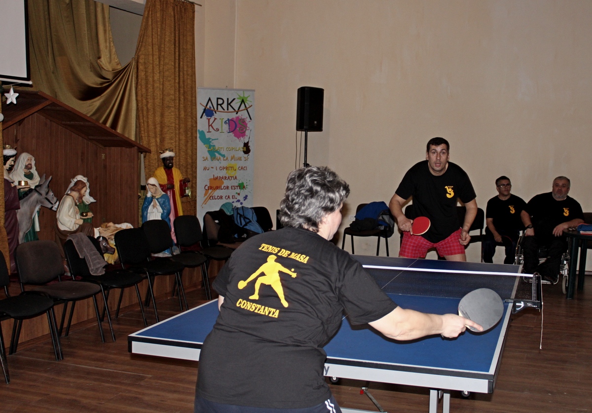 Recunoscuta ca traditionala in judetul Constanta, organizata lunar de catre Asociatia Judeteana Constanta a Sportului pentru Persoanele cu Handicap, competitia de tenis de masa pentru persoanele cu dizabilitati s-a disputat pe data de 16 decembrie si s-a numit Cupa Mos Craciun. Turneul dedicat exclusiv sportivilor cu handicap a fost gazduit de Centrul de zi ARKA (soseaua Industraila nr. 2) si a reunit luna aceasta 16 sportivi, care s-au intrecut atat la proba de simplu, cat si la cea dublu.