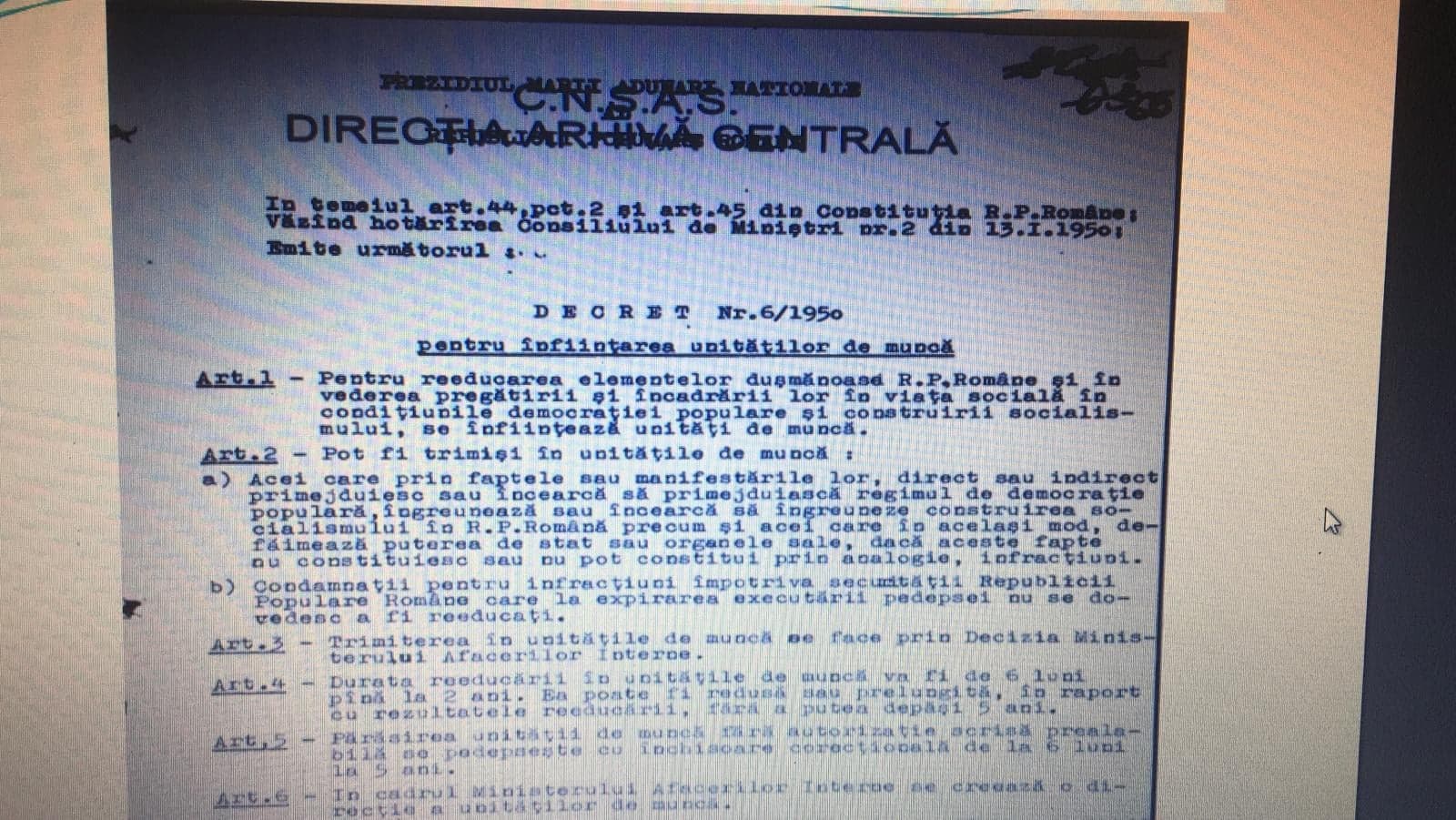 În Actul Consiliului Securității Statului, denumit “DOCUMENTAR”, întocmit în anul 1968, s-a făcut o analiză ”privind internarea unor persoane prin măsuri administrative în unități de muncă, colonii de muncă, locuri de muncă obligatorii și stabilirea domiciliului obligatoriu”.