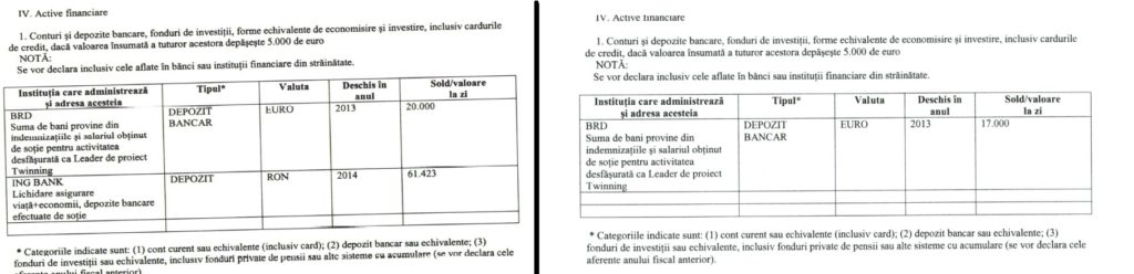 Așadar, într-un interval de 5 luni (noiembrie 2014-aprilie 2015), familia Ion-Tudoran a plătit circa 150.000 de euro pentru proprietățile de la Sinaia și de la Neptun-Olimp. Dar din conturi, conform declarației de avere din iunie 2015, s-au scos doar 3.000 euro și 61.000 lei (echivalent a 13.500 euro). Adică 16.500 de euro. De unde diferența? Pentru că în acest interval familia judecătorului nu a vândut nimic, nu a primit vreo moștenire, nu a câștigat la loterie.