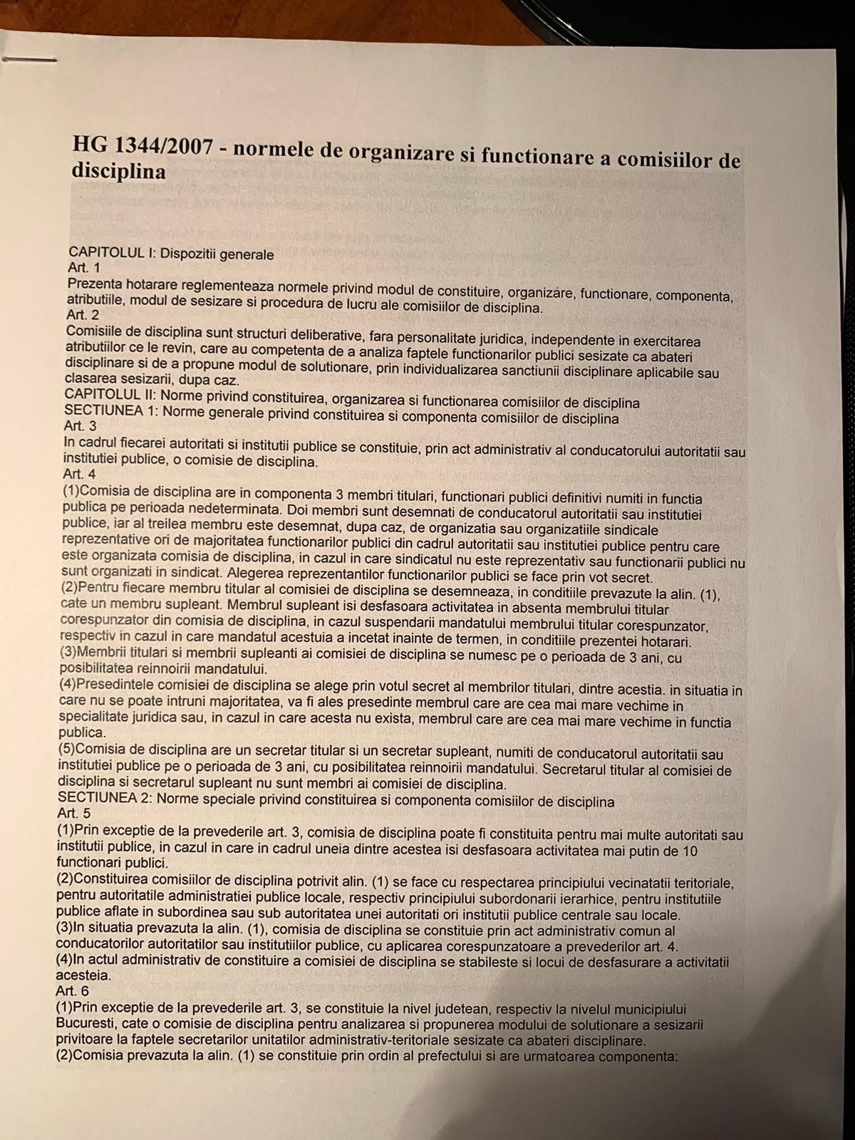 Astfel, la doua saptamani de la ordinul primit de la „stapan” (in data de 12.09.2019 in sedinta sus mentionata), Adrian Vaida emite decizia nr 321/04.10.2019 prin care infiinteaza de la sine putere o alta comisie de disciplina, cu incalcarea flagranta a prevederilor art 4 alin 3 din HG 1344/2007 privind normele de organizare si functionare a comisiilor de disciplina .