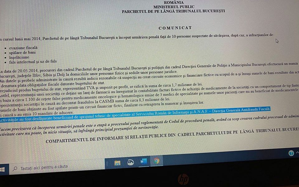 Dosarul take over Polisano. Activităţile au fost desfăşurate beneficiind de sprijinul tehnic de specialitate al Serviciului Român de Informaţii şi A.N.A.F. – Direcţia Generală Antifraudă Fiscală, dezvaluie Sorina Ruxandra Matei. #MafiaAPriori