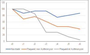 avansat de profesorul francez Didier Raoult. Acesta a folosit Plaquenil, un medicament ce conține hidroxiclorochină și folosit pentru prevenirea și tratarea malariei, pentru 24 de pacienți, printre primii infectați în sud-estul Franței. Pacienții care nu au primit hidroxiclorochină (Plaquenil) erau încă contagioși după șase zile, în timpe ce doar 25% dintre cei care au primit tratamentul mai erau contagioși. Față de pacienții netratați astfel, studiul arată că după 6 zile, cei care au primit combinația de medicamente, doar 5% mai erau purtători ai virusului.