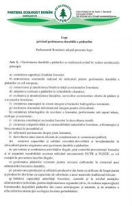 Propunerea legislativă prevede interzicerea tăierilor haotice pe 10 ani precum și a exportului de buștean cu sau fără coajă sau lemn rotund, cherestea și lemn de foc. Un proiect așteptat de români și care, odată adoptat va produce un T0 în relația cetățenilor cu Statul român, bazată pe încredere, din perspectiva protejarii mediului înconjurator. În prezent, datele oficiale furnizate de Costel Alexe, ministrul Mediului, Apelor și Padurilor sunt puternic contestate și chiar necredibile.