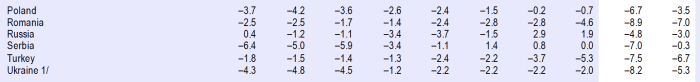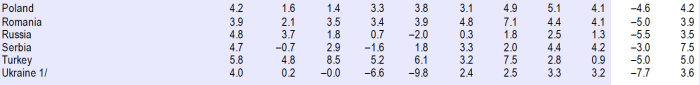 Pentru România, prognoza de scădere economică este de -5% pentru 2020 și cu o revenire la +3,9% în 2021. Ambele prognoze sunt optimiste din punctul meu de vedere: Căderea economică ar putea fi dublă pentru 2020 (spre -10%), iar în 2021 este greu de crezut că vom avea măcar creștere economică. Întrucât, în mod real, România nu a luat nicio măsură economică pentru populație și pentru companii. #nimicpentrupopulație. Iată și prognoza pentru România (ultimele două coloane sunt prognozele pentru 2020 și 2021):