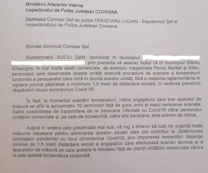 Nu am nimic împotriva aplicării procedurii de măsurare a temperaturii corporale în situația intrării în spațiile închise, cu condiția să fie realizată în acord cu parametrii stabiliți de normele medicale: camera separată, personal medical instruit, respectarea confidențialității datelor medicale obținute, asumarea de către cadrul medical a păstrării secretului datelor astfel cunoscute, și eliberarea unei dovezi asumate cu privire la rezultatul obținut, precizeaza Daniel Caraman pe pagina sa de socializare. (Cristina T.).
