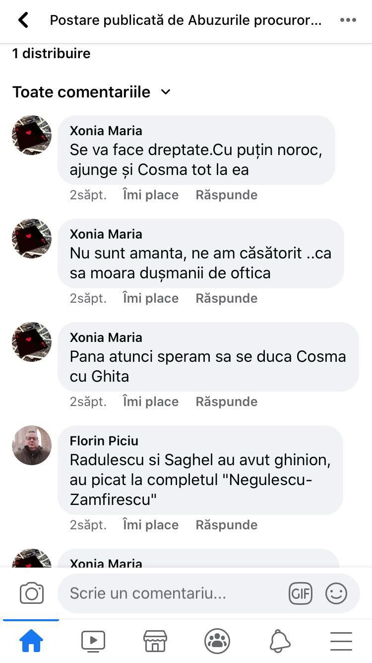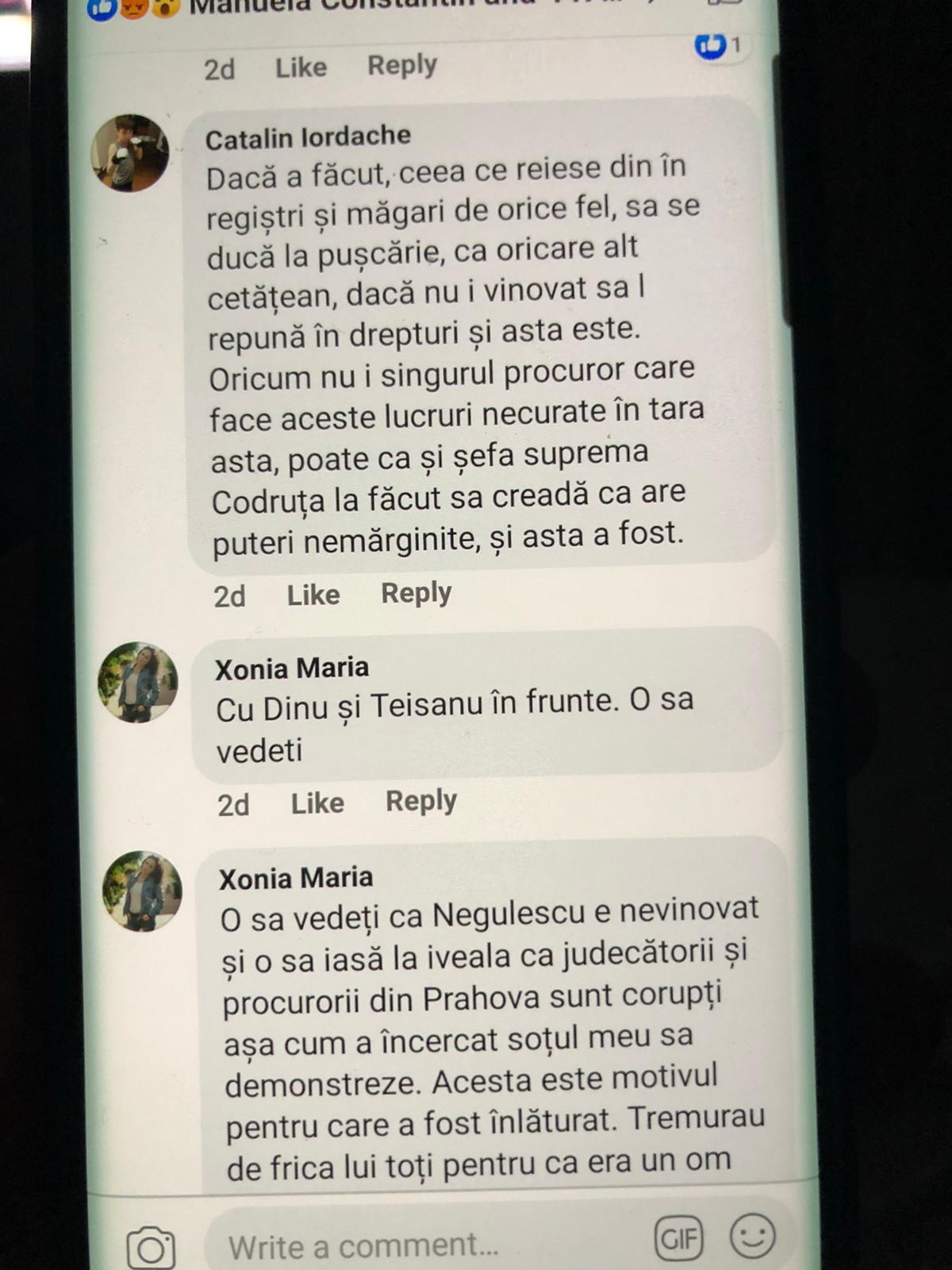 In acest articol precizam ca, ofiterul judiciarist din cadrul IPJ Prahova, Popescu Ana Maria, actuala sotie a procurorului Negulescu Mircea utillizeaza contul de facebook Xonia Maria prin care santajeaza public doi judecatori: Dinu si Teisanu.