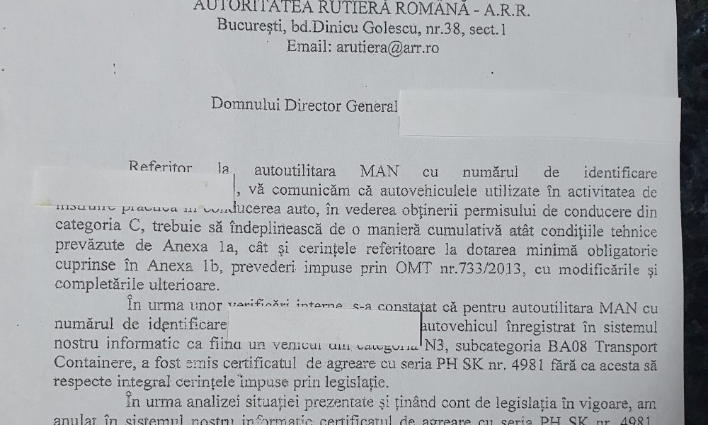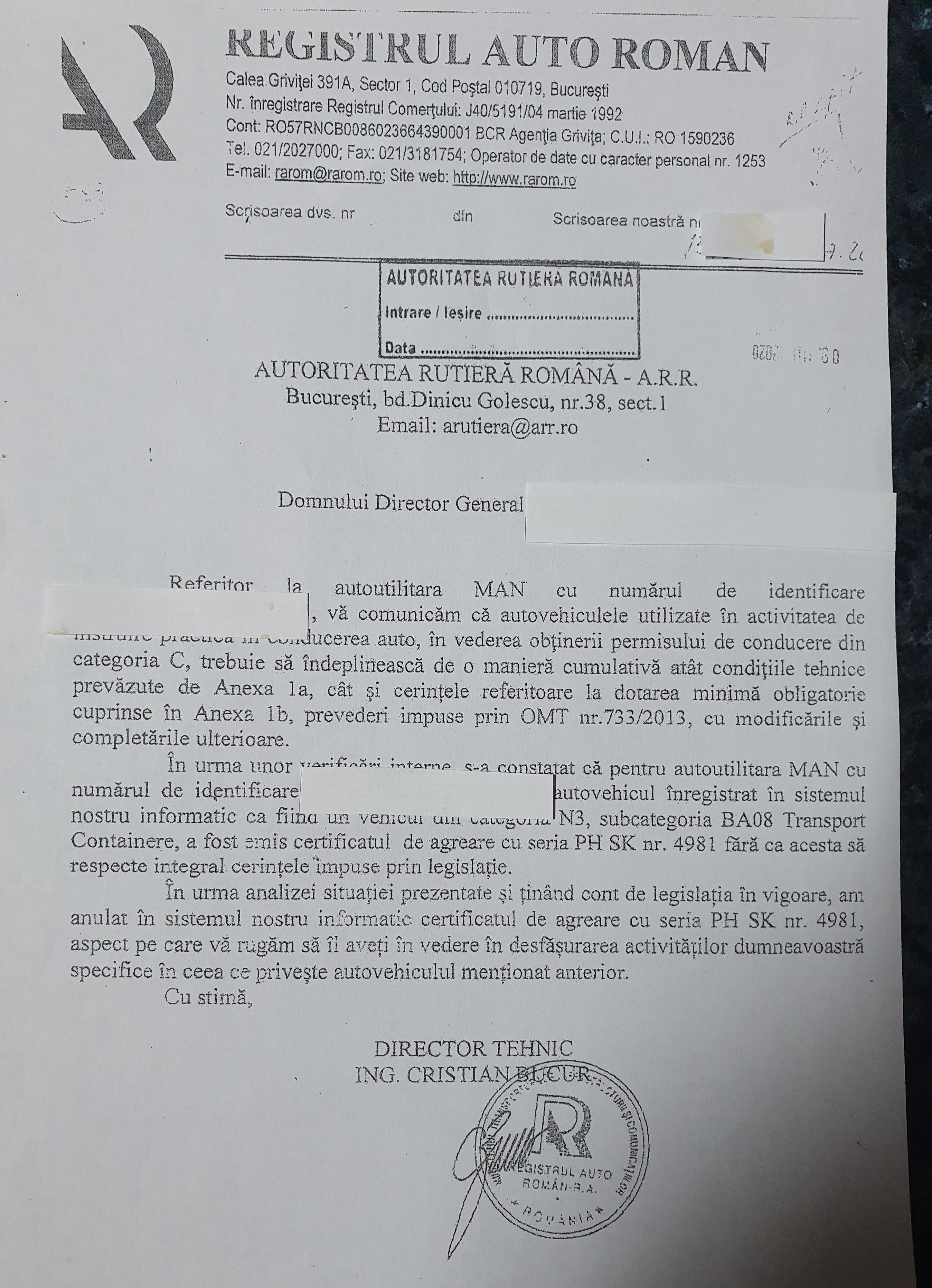 RAR Bucuresti acorda, in conditii de deplina legalitate, respectand, intrutotul, procedurile legale ( conditii, obligatii, cerinte, termene etc ), CERTIFICATUL DE AGREERE in speta, revenind, ulterior, si aplicand masuri nelegale, prin influentarea unei decizii emisa de inalta autoritate din si prin pixul directorului Cristian Bucur, inalt functionar de stat care si-a exercitat si traficat influenta, in virtutea pozitiei sale, detinute in cadrul REGISTRULUI AUTO ROMAN, si anume aceea de director tehnic si care, la comanda grupului TUGAN, dispune anularea, in sistemul informatic de stat al Romaniei, pe care il opereaza clandestin si ilegal, a respectivelor certificate de agreere, asteptand confruntari cu reprezentantii operatorilor care trebuie sa se prezinte si sa achite, pe toate nisele, catre grupul BUCUR CRISTIAN TUGAN DRAGOS si legaturile acestora din judetul Prahova etc si care trebuie sa “incaseze”. Vom reveni. (Cerasela N.).