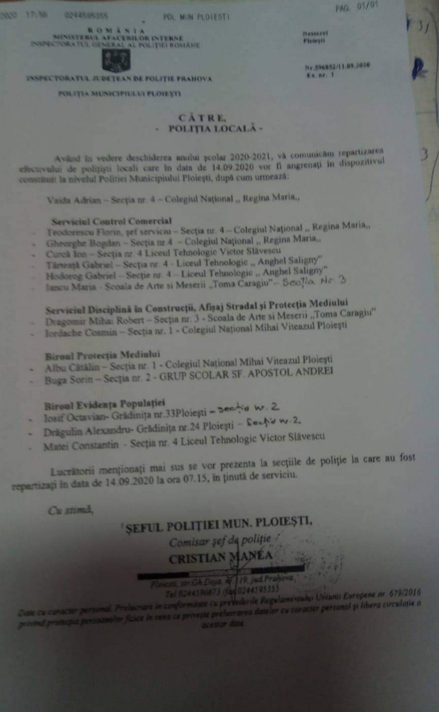 Soc si groaza, Adrian Vaida este trimis la deschiderea anului scolar de către șeful Poliției Municipale, Manea Cristian, mâine 14.09.2020. Bineînțeles, acesta nu cunoaște situația de la Poliția Locală, fiind iar luat in „ras”!