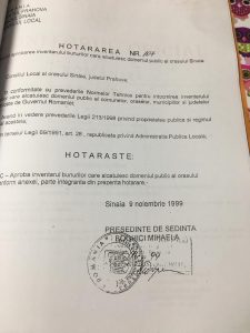 O gașca politico-militara din județul Prahova a deposedat Statul Roman si cetățeni romani si străini atât de dreptul de proprietate, a bunurilor si a proprietatilor deținute pe raza localității Sinaia, cat si de dreptul de folosința al acestora