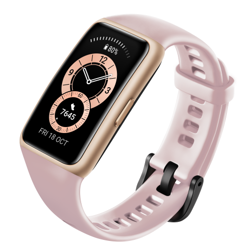 HUAWEI Band 6 este disponibil în variantele de culoare Graphite Black, Amber Sunrise, și Sakura Pink , pentru a se potrivi cu stilul sau ținuta utilizatorului. Componența ceasului din polimer întărit cu fibră de sticlă, cu învelișul său delicat cu textură metalică și cureaua din silicon moale care nu irită pielea, este realizată prin polimerizare și tratată cu ultraviolete, oferind un design tineresc ce dictează tendințele în designul brățărilor inteligente.