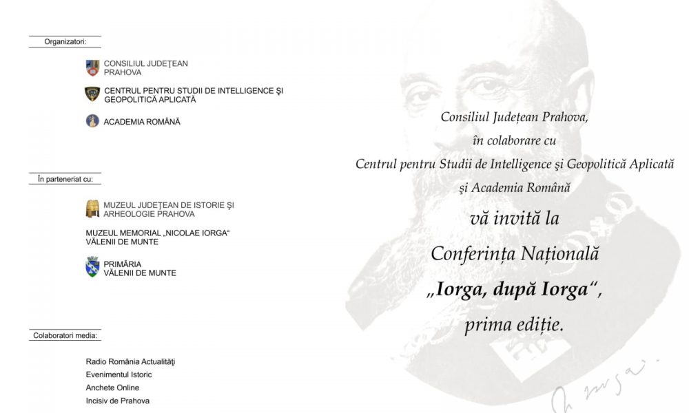 La 150 de ani de la nașterea lui Nicolae Iorga, Consiliul Județean Prahova, împreună cu Centrul pentru Studii de Intelligence și Geopolitică Aplicată, organizează, la Vălenii de Munte, între 28-30 mai, Conferința Națională ”Iorga, după Iorga”, prima ediție.
