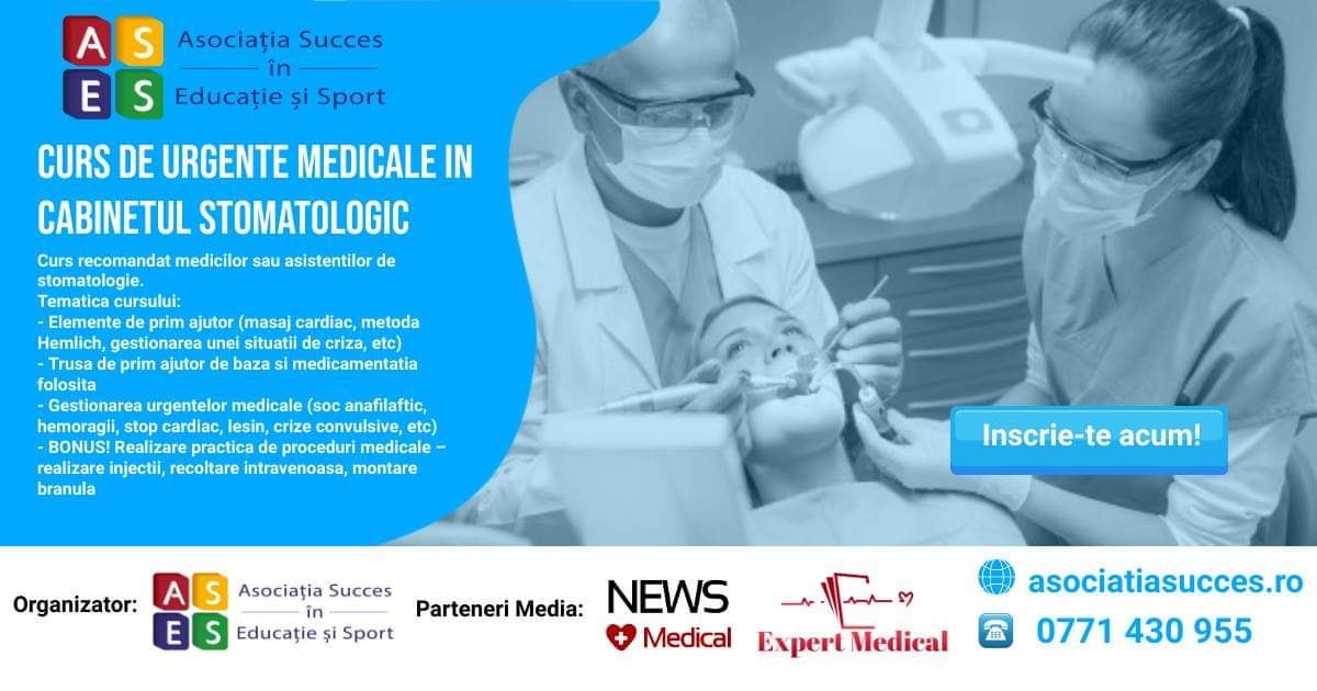Astfel de cursuri sunt organizate de Asociatia Succes in Educatie si Sport in Bucuresti si Constanta, dar la cerere se pot organiza la nivel national, detalii gasiti pe: https://asociatiasucces.ro/curs-de-urgente-medicale-in-cabinetele-stomatologice/