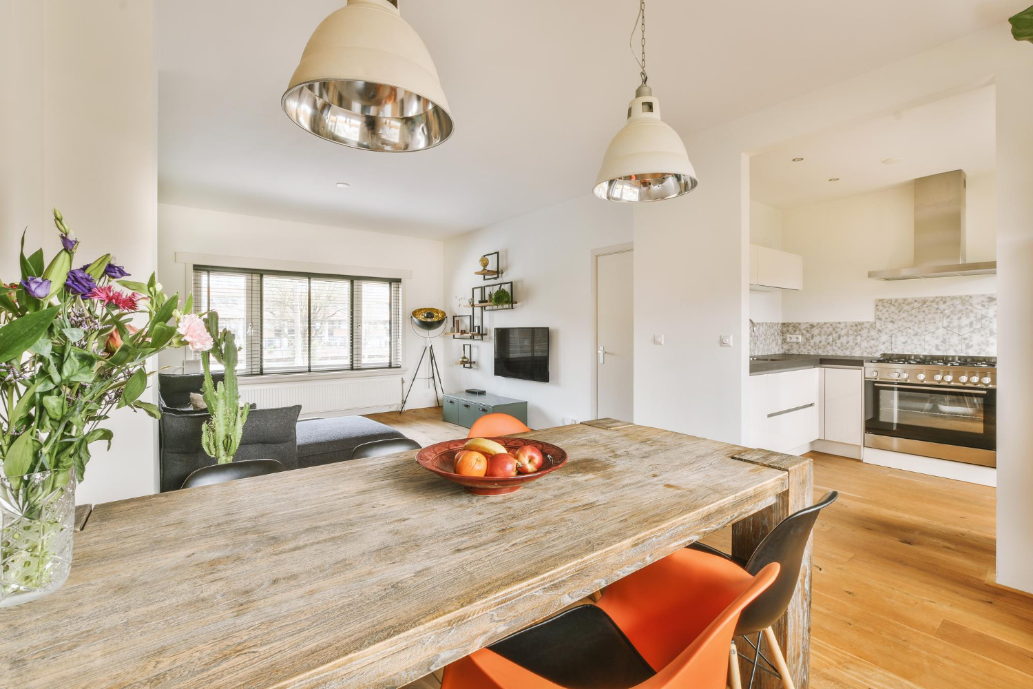 Deasupra mesei de bucatarie, designerii de interioare tind sa foloseasca o distanta de 55-65 de centimetri intre sursa de lumina si blat (luand in calcul si armatura, si înaltime medie a membrilor familiei/rezidentilor). La inaltimea respectiva, lampa lumineaza de obicei intreaga masa, dar fara a deranja persoanele care stau in jurul ei, asa ca nu este nevoie de un abajur care sa estompeze lumina.