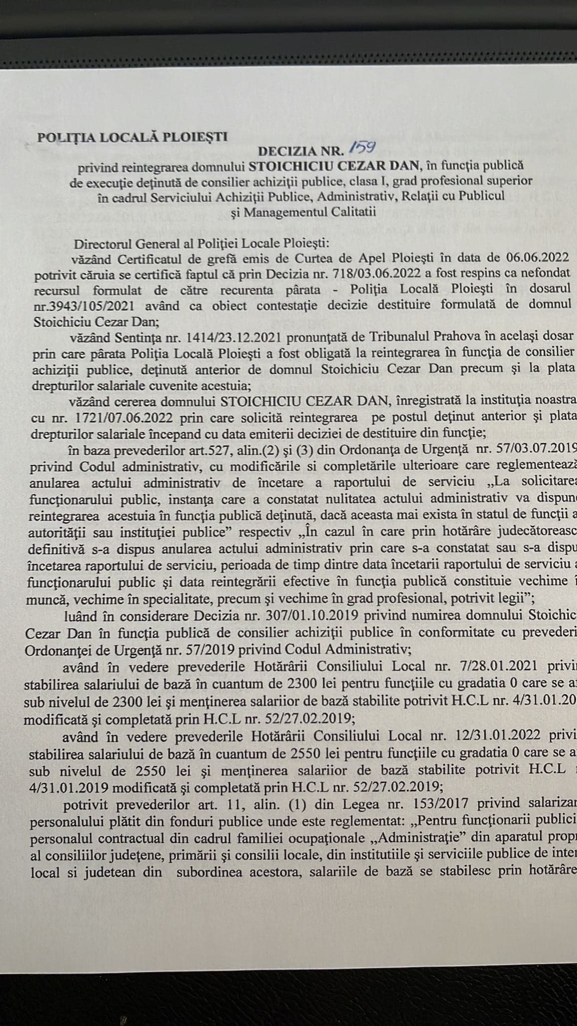Cezar Dan Stoichiciu va fi reaincadrat la Politia Locala Ploiesti cu data de 10.06.2022/Inca o dovada ca analfabetul functional de la sefia Politiei Locale Ploiesti este irecuperabil