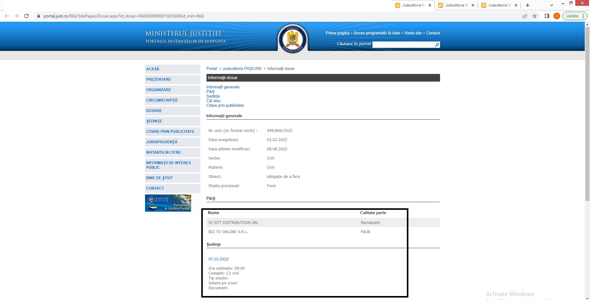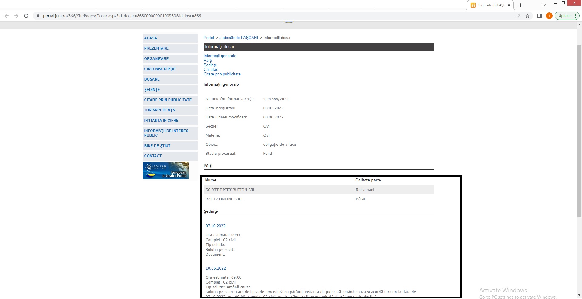 cele 3 procese castigate cu firmele care au data in judecata RTT DISTRIBUTION SRL si au pierdut.