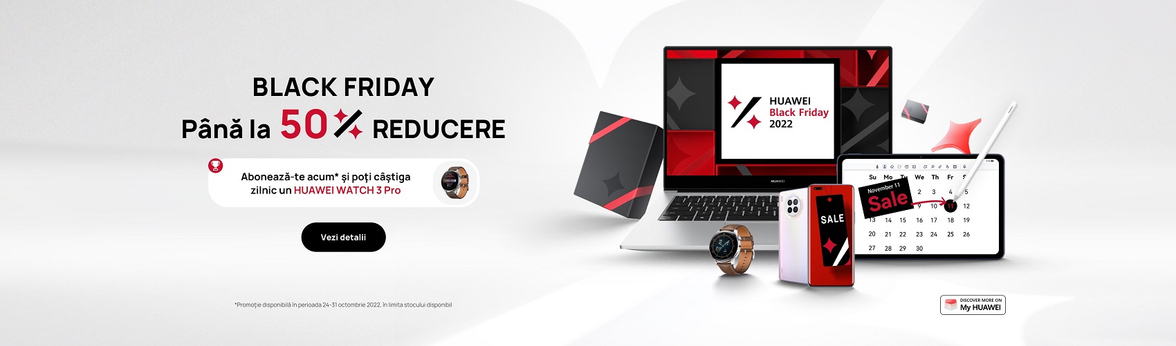Utilizatorii pot găsi mai multe detalii despre această campanie, dar și despre surprizele ce urmează în săptămânile următoare aici: https://consumer.huawei.com/ro/offer/promotii-black-friday-huaweistore/.