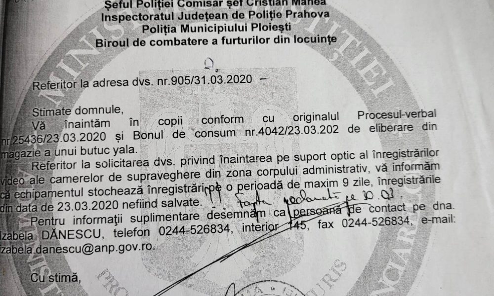 Ministrul Afacerilor Interne, Lucian Bode, reactioneaza prin I.G.P.R si sesizeaza organele de cercetare penala cu privire la „Bomba ecologica de la Pleasa” si atentatul la siguranta nationala