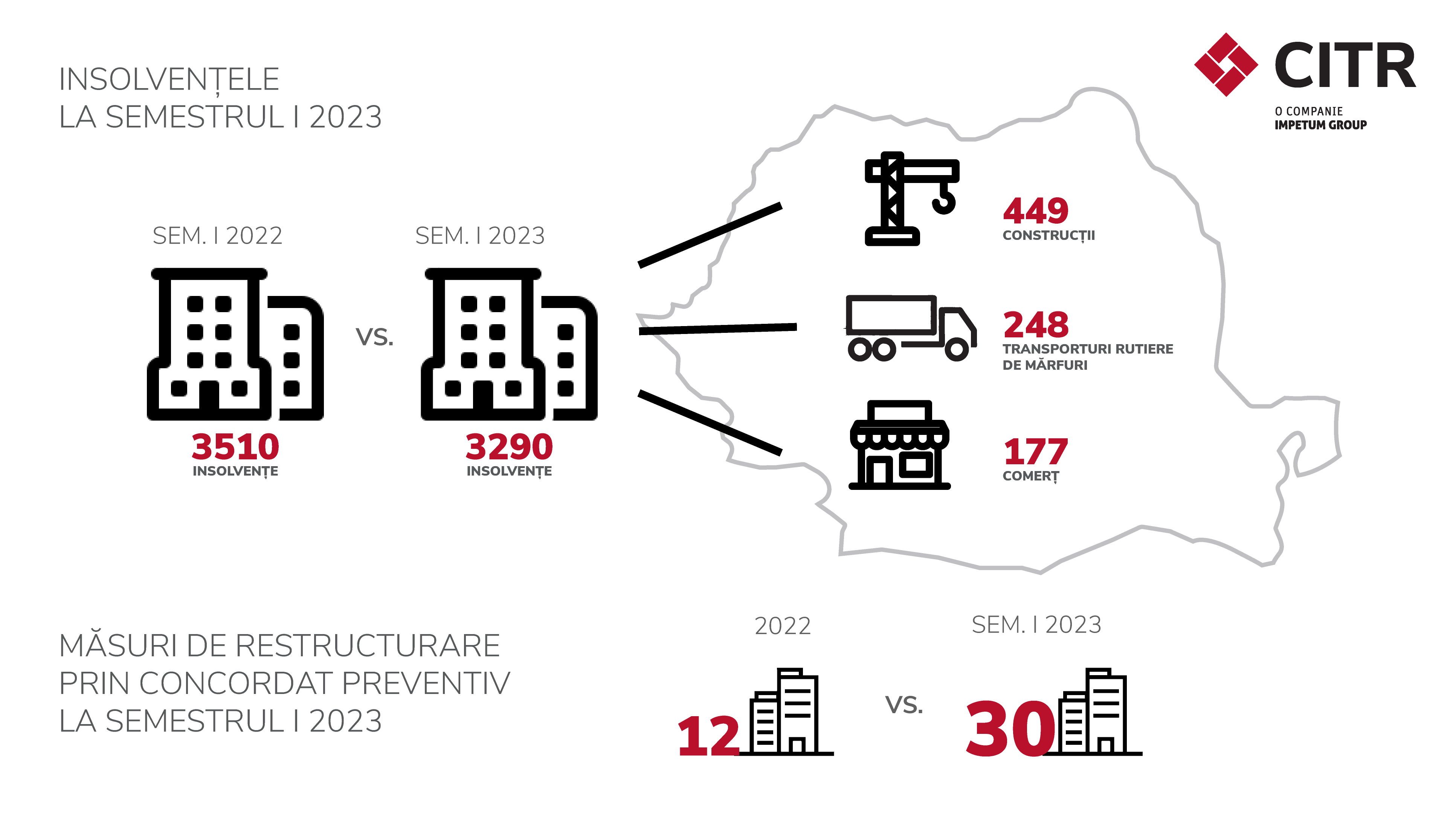 CITR: În primul semestru al 2023, mediul antreprenorial a fost mai orientat către noile mecanisme de restructurare – numărul companiilor care au apelat la concordat preventiv crește, iar numărul celor care au intrat în insolvență rămâne relativ constant
