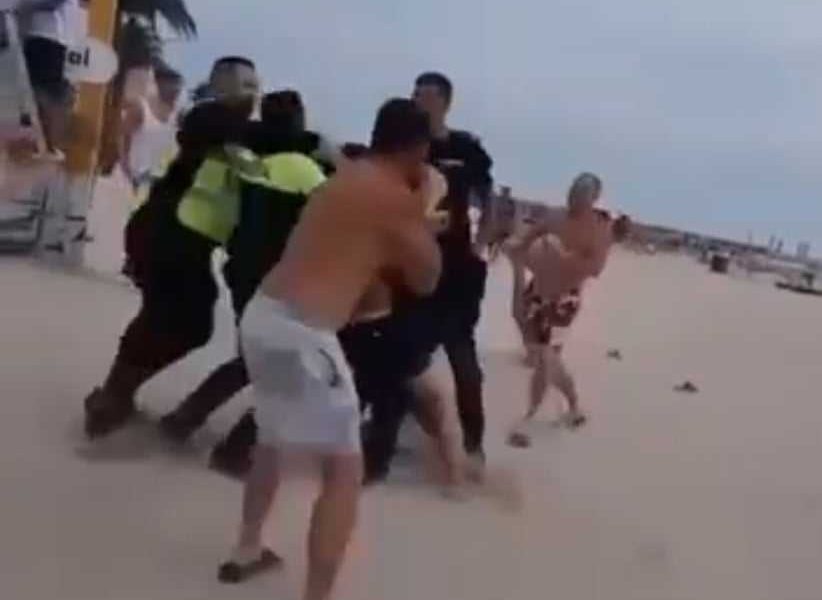 După ce si-au împărțit pumni și picioare între ei, pe plaja din Costinești, scandalagiii si-au îndreptat atenția către forțele de ordine, polițiști și jandarmi