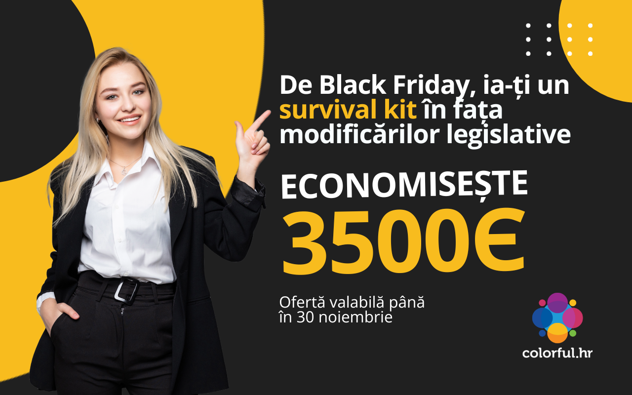 Oferta de Black Friday colorful.hr, valabila pana pe 30 noiembrie, cuprinde pachetul solutii digitale de HR alaturi de servicii legislative: