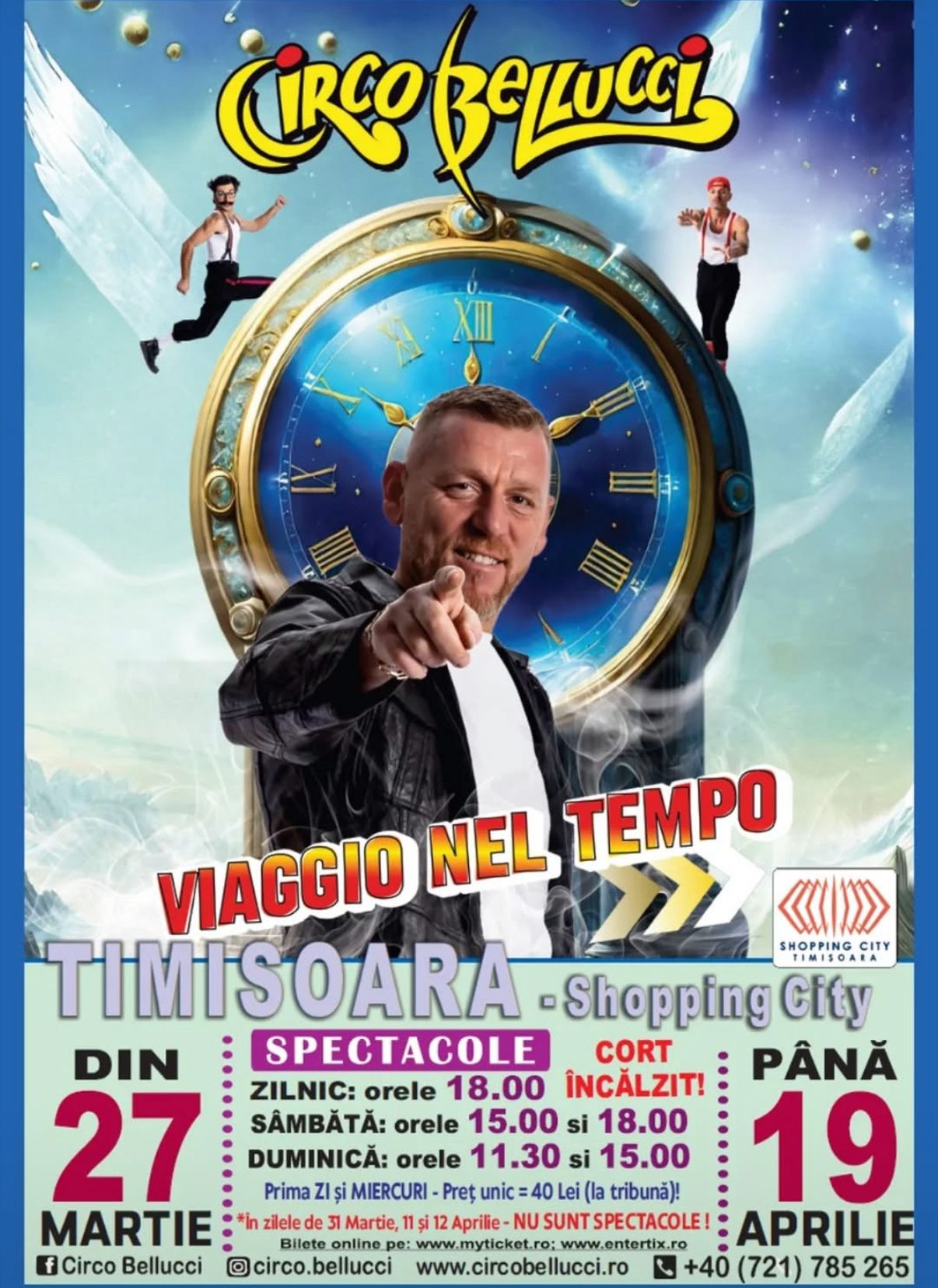 Timișoara găzduiește, în perioada 27 martie – 19 aprilie, spectacolele Circo Bellucci, reunite sub titlul „Viaggio nel Tempo” (Călătorie în timp), organizate în parcarea centrului comercial Shopping City Timișoara.