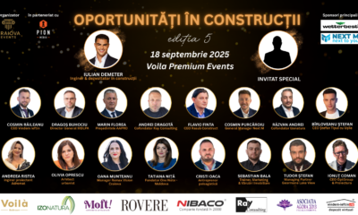 Pe 18 septembrie 2025, la Voila Premium EventsînCraiova, are loc cea de-a cincea ediție a evenimentului “Oportunități în Construcții”, organizat de Craiova Eventsîn colaborare cuPion Media....
