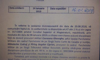 ”Inspecţia Judiciară a exercitat acţiunea disciplinară faţă de procurorii Cosneanu Gheorghe, şeful Secţiei Parchetelor Militare din cadrul PÎCCJ („SPM”), Mihalache Codruţ şi Pîrlog Bogdan Ciprian, de...